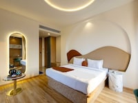 The interiors follow a moon-inspired philosophy: curved edges, soft tones, rounded textures, and lighting that settles the senses. Rooms feel airy and peaceful, designed less like hotel units and more like quiet retreats that hold you gently. Warm glows, clean minimal lines, and a natural flow between spaces create an atmosphere where mornings stretch easily, afternoons soften, and evenings settle into a mellow rhythm. The mood is intentional—light, calming, and tuned to Goa’s quieter side.