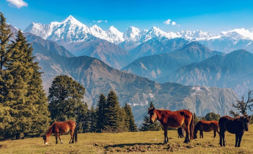 One of the most popular hill stations in Uttarakhand, Binsar is a must-visit destination for those who crave to be close to nature and its elements. While here, many people visit the popular Binsar Wildlife Sanctuary to experience bird-watching and practice wildlife photography. A view from the “Zero Point” at this sanctuary is also breathtakingly beautiful. One can spot the Himalayas, Kedarnath, Nanda Devi, and other famous peaks from here.