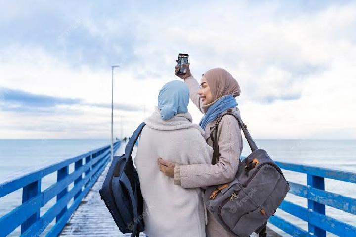 (Ilustrasi muslimah sedang berwisata bersama-Sumber:Hypeabis)