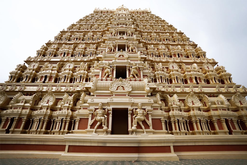 Menara-menara ini menjadi ciri khas kuil Hindu bergaya Dravida dari India Selatan. Jika kamu berdiri di depan kompleks kuil, kamu akan melihat susunan patung dan relief yang berwarna-warni, menggambarkan berbagai tokoh dalam mitologi Hindu. Detail visual ini membuat bangunan kuil tampak sangat megah sekaligus artistik.