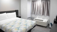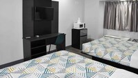Pros - Freshly remodeled room, pets stayed for free, great nightly rates. Improvements - they need a pool and there is plenty of room for 1.