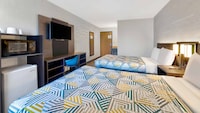 There was a hole in my bathroom door and the curtains were hanging off the window, couldn't be attached on the one side, so they could never be closed all the way. The bed was very comfortable and the towels were fluffy, not old and overused.