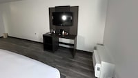 It's on the budget side, but the room was recently nicely remodeled. Could use a recliner or small sofa but otherwise nice. Location largely drove this decision, it was a week and a half stay due to a close family member passing. The staff was very helpful and accomodating. Thanks to all of you! Dog friendly, an acre of open parking. Recommended for what you get for your money, and an in-town, central location.