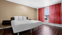 Everything in the room was clean. The towels, linens, etc. were all neat. The environment felt completely safe. I had no qualms staying at this inexpensive location as an older, single woman. However, the physical room itself was a bit shabby. The door jam had been broken and only haphazardly repaired. A large piece of veneer had been pulled off the bed headboard. Basically everything that was under the control of housekeeping was totally fine, and things that required construction work to repair were rough around the edges. I also appreciate the close proximity to a grocery store, restaurants, and gas stations. All that said I got a perfectly good nights sleep for $56. For me that is stellar value.