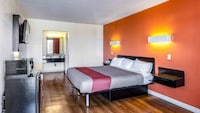 Great location, great rates, and super friendly staff! Like most Motel 6s, they allow two pets at no extra charge, which is always a plus. The room was a bit dated but very clean, and everything worked just fine.