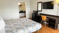 The hotel offers a great location for work and is budget-friendly, but the experience was marred by noisy neighbors with barking dogs, making it difficult to understand why there were three adults, four children, and two dogs all sharing one room, especially when it got very loud at 11 PM.