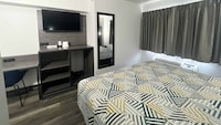 I appreciated the modern and impeccably clean room, which included a mini fridge, microwave, and functional cable with a clear picture. However, I was disappointed to spot a roach in the bathroom, indicating that they might need to address pest control soon.
